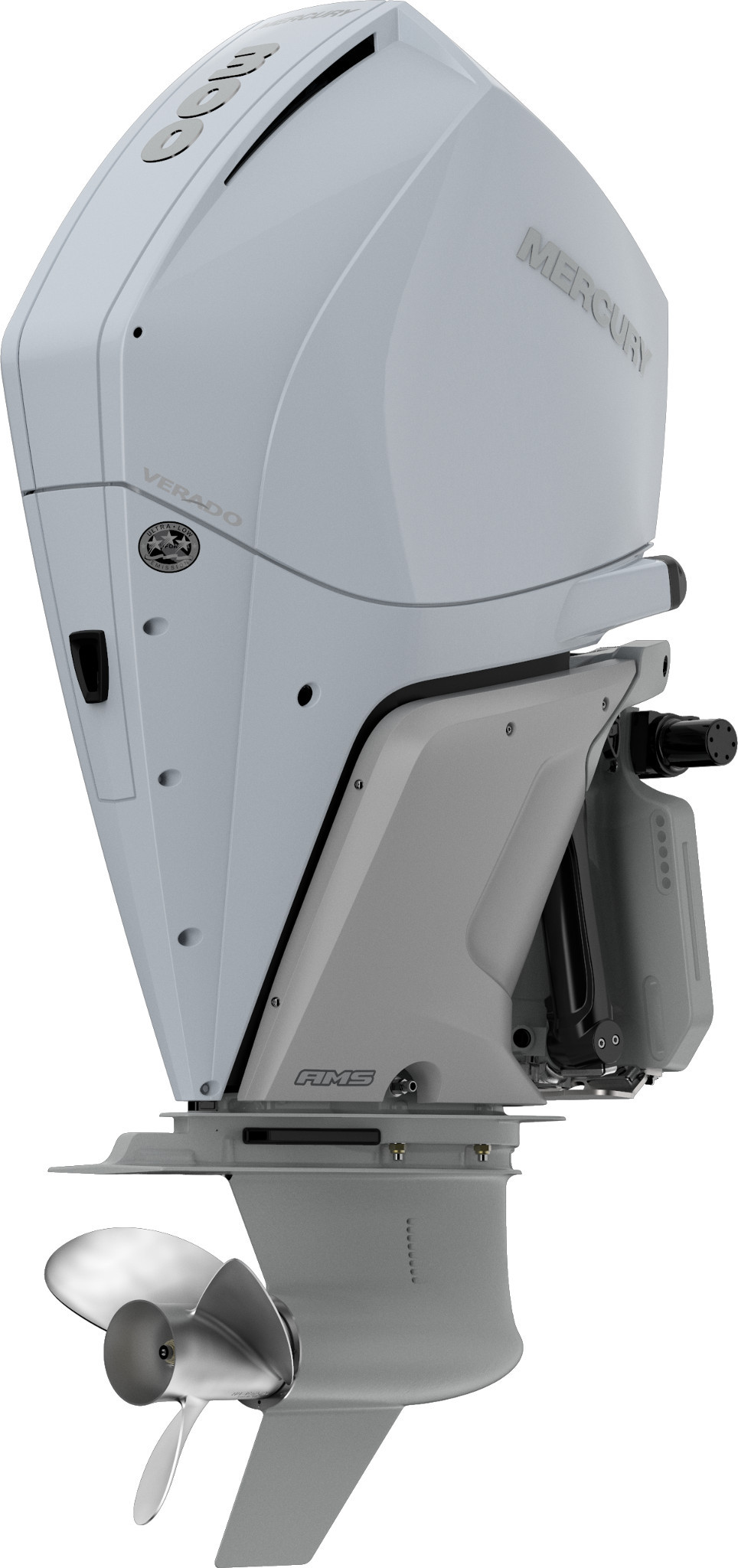 Verado med 250 hk og 300 hk sætter nye standarder for velafbalanceret og støjsvag præstation. Den næste generation af AMS (Advanced MidSection - avanceret midtersektion) bevæger motorophænget agter og udad, så vibrationer praktisk talt elimineres. Motorstøj minimeres ved hjælp af et tunet flerkammer-luftindtag, brændstofinjektordæksler, der reducerer højfrekvent støj, samt et teknisk set meget avanceret tætningssystem af motorhjelmen.